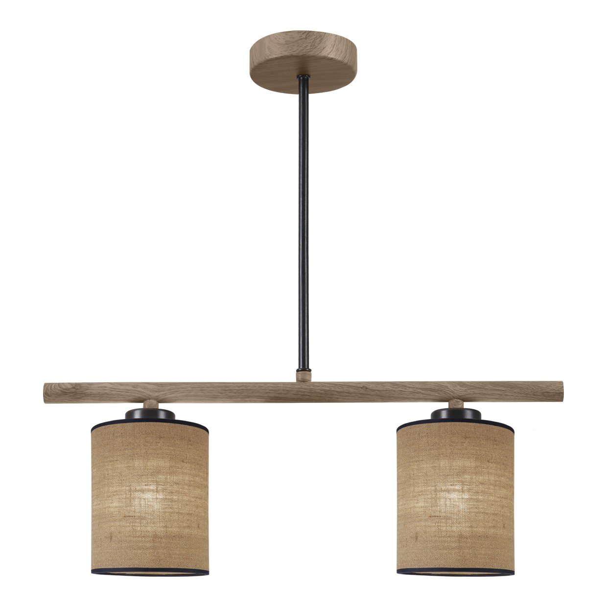 Barra de 2 luces Colección BERTA. Una sencilla propuesta, fabricada en metal, en acabados negro y madera y pantalla de tela color marrón. Usa bombillas E-27, 2 x E-27 60W Max., compatible con bombillas Led (no incluidas). Un diseño sencillo y fácil