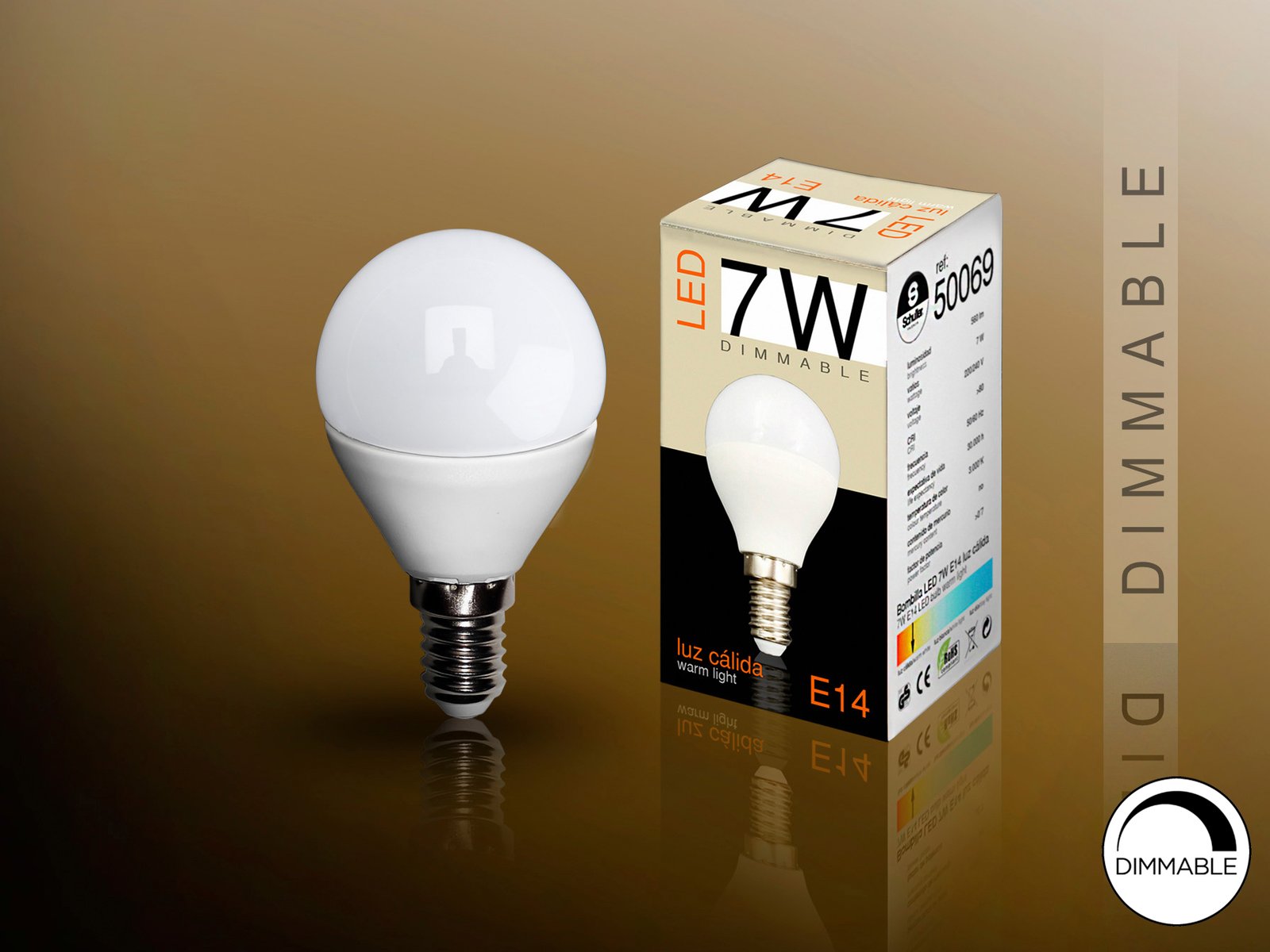 Bombilla mini globo opal LED DIMABLE de 7W. Luz cálida 3.000K. 560 lúmenes, equivalente a incandescente de 60W. Haz de luz de 180°. Para portalámparas E14.