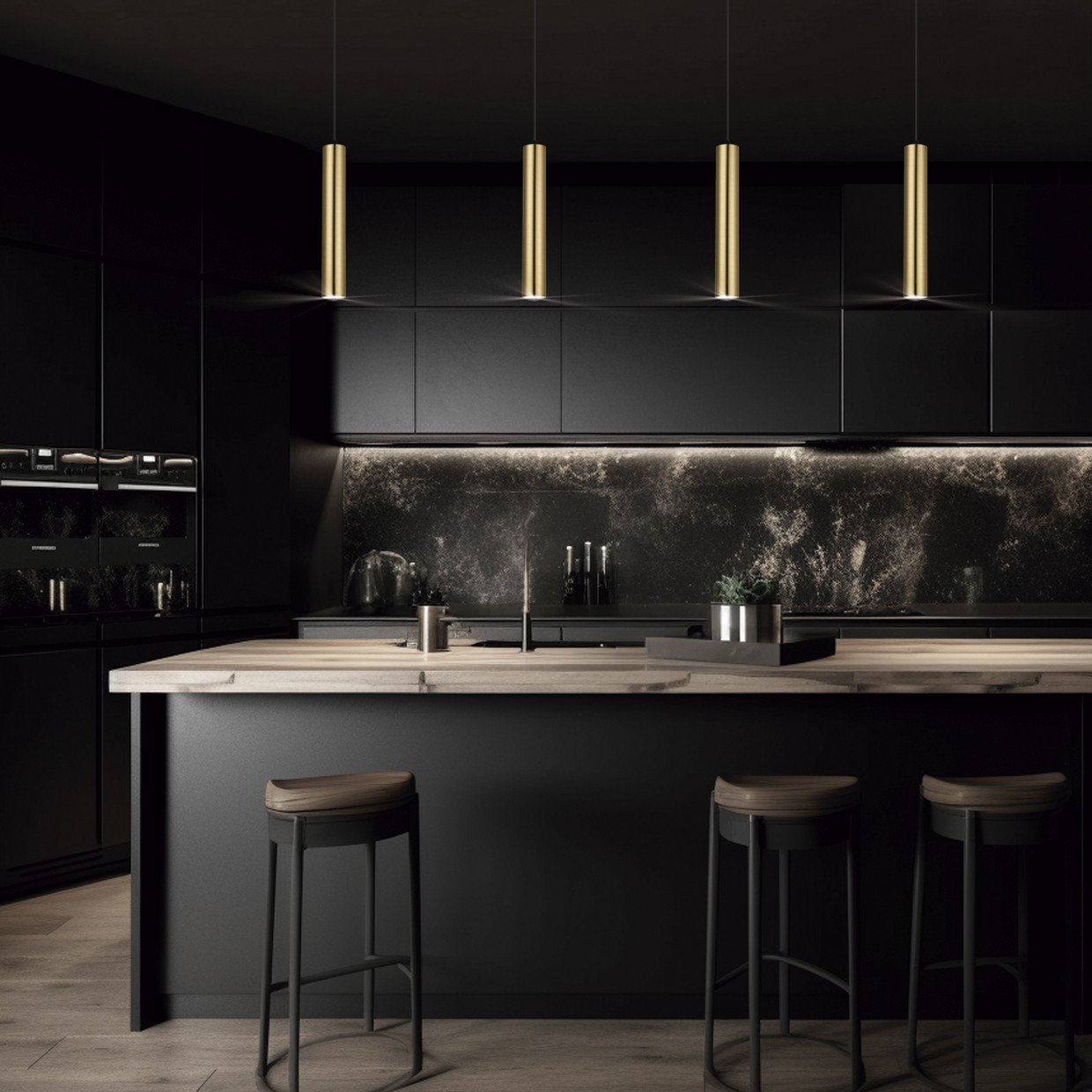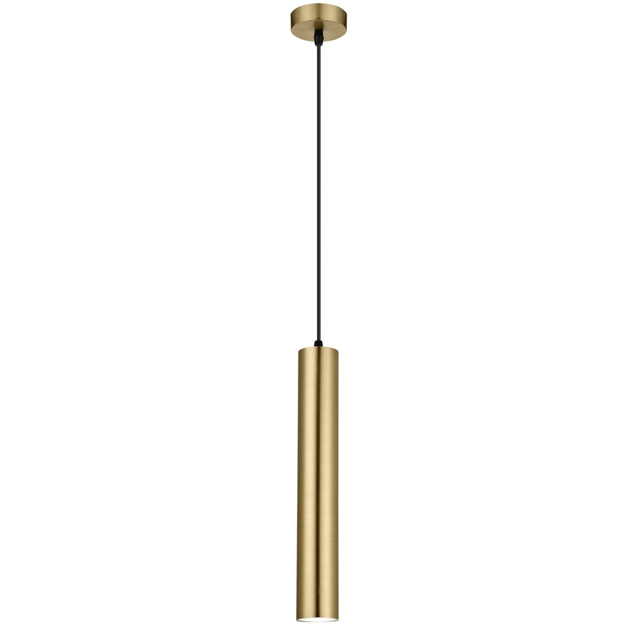 Lámpara colgante de la Colección Antia. Fabricado en metal en acabado latón. Usa bombilla GU-10, 1 x GU10 10W Max., (No incluida).Cable negro PVC.Altura máxima: 120cm.Medida base techo: Ø8×2,5cmMedida tubo: Ø5,5x35cm.