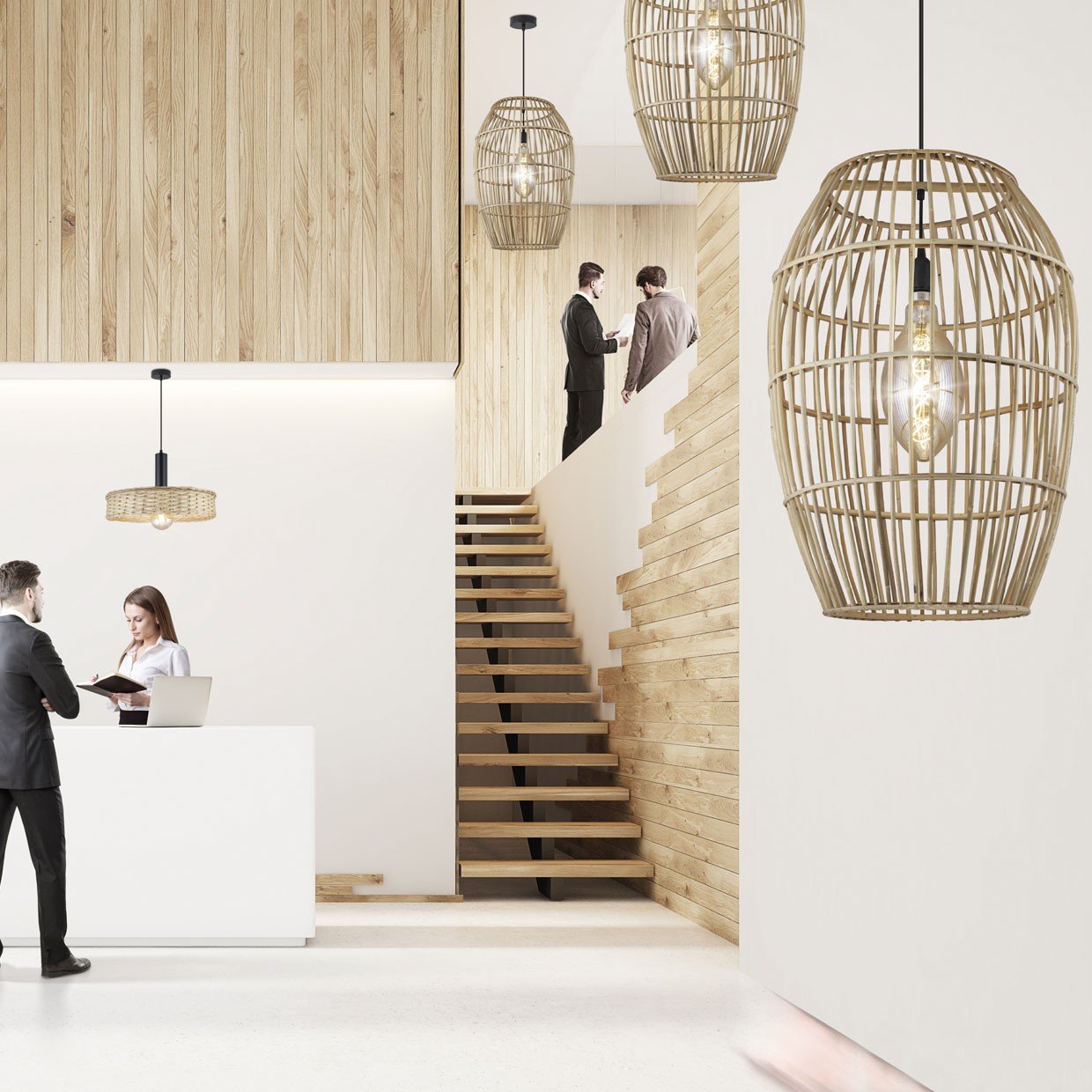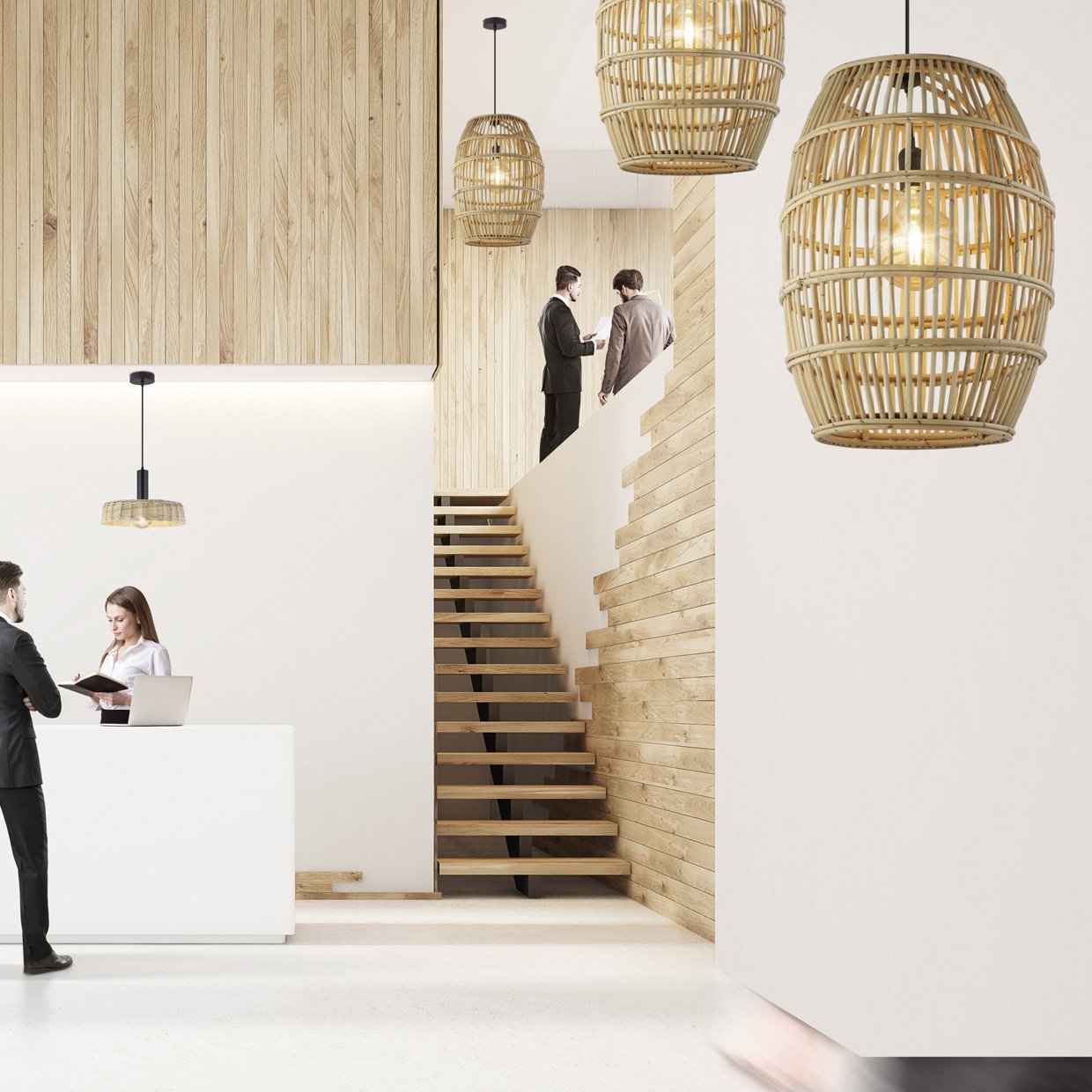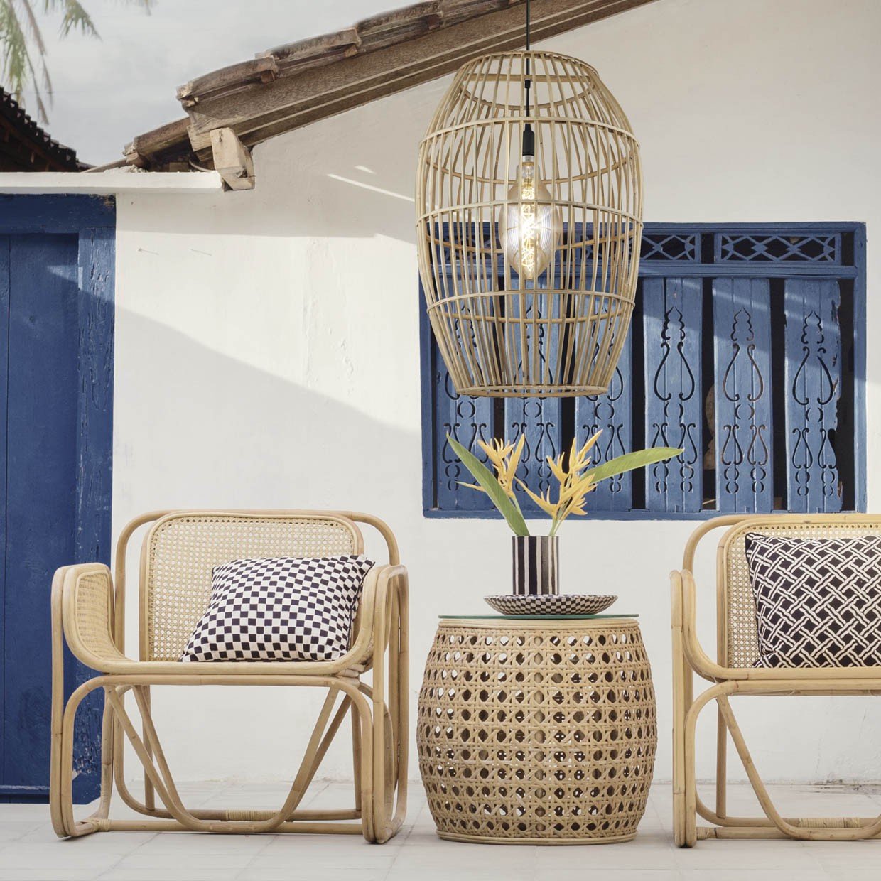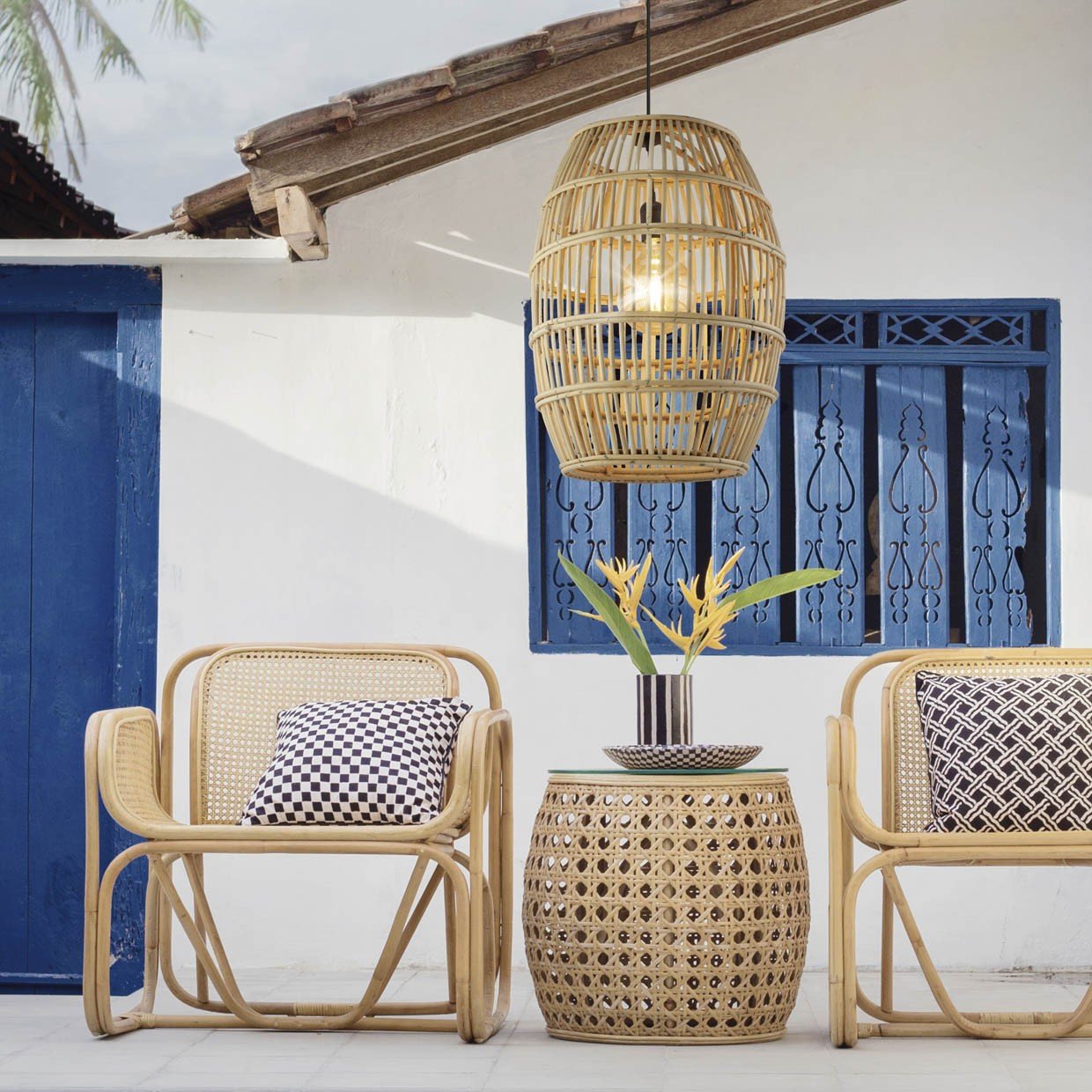 Lámpara / Colgante de la Colección Riviera. Fabricado en caña de bambú en España. Un pieza de grandes dimensiones, con una imponente presencia que nos encanta. Usa bombillas E-27, 1 x E-27 60W Max., compatible con bombilals Led. (no incluidas). Las l