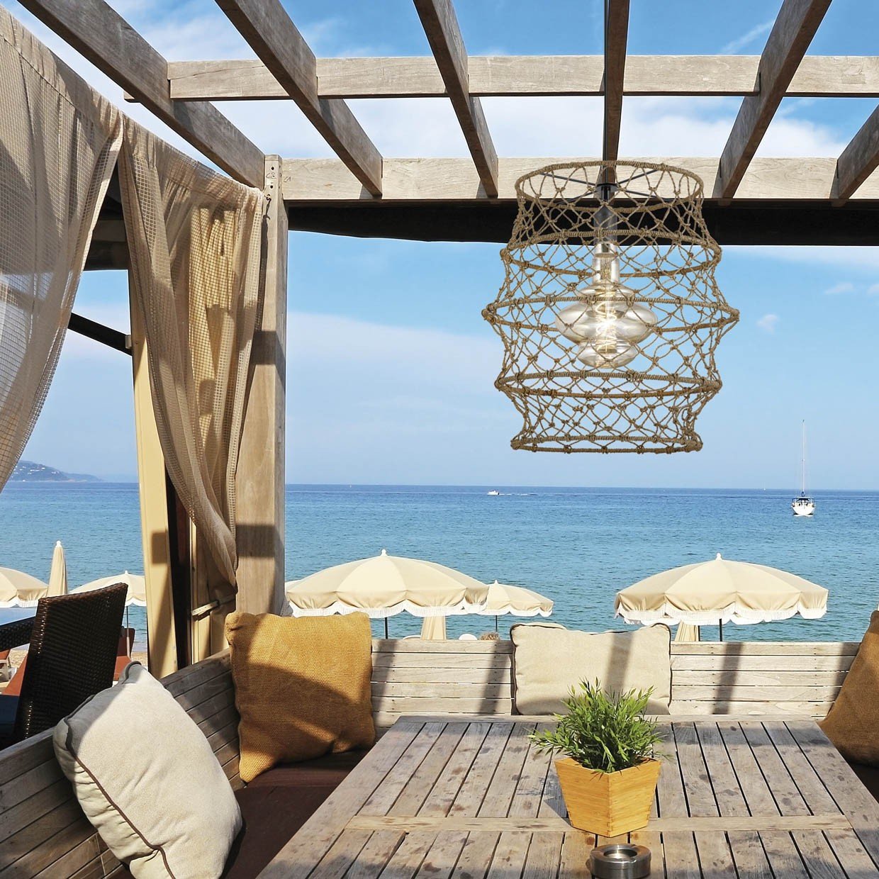 El mar y sus gentes sirven de hilo conductor en la creación de esta pieza. El colgante de la colección SOLERO, es una luminaria que posee una imagen contundente y fuerte personalidad. Apta para todo tipo de decoraciones, desde los ambientes rústicos