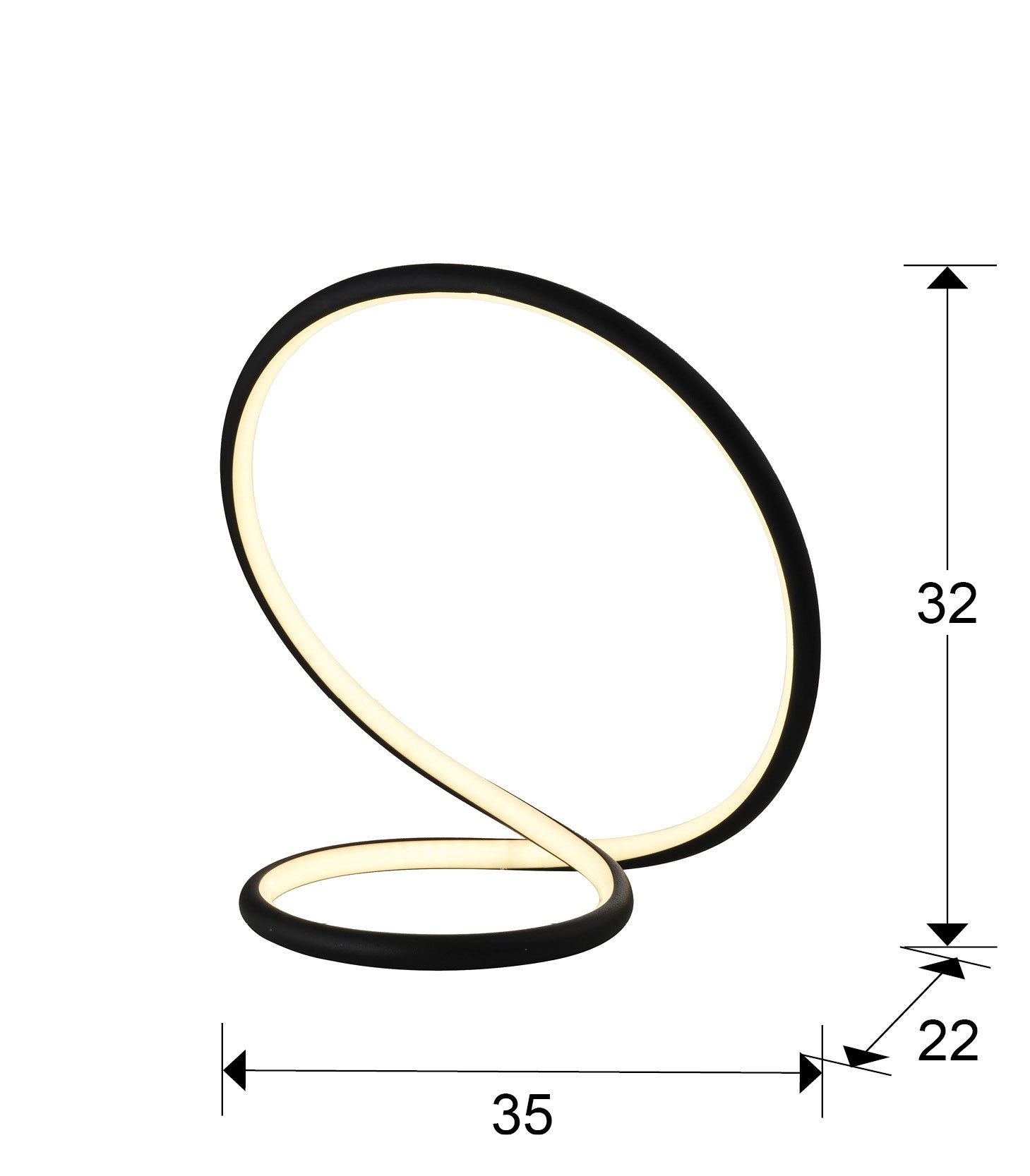 Sobremesa realizado en aluminio acabado negro mate arenado. Difusor opal de silicona. 15W LED. 750 lm. 3.000 K. DIMABLE.