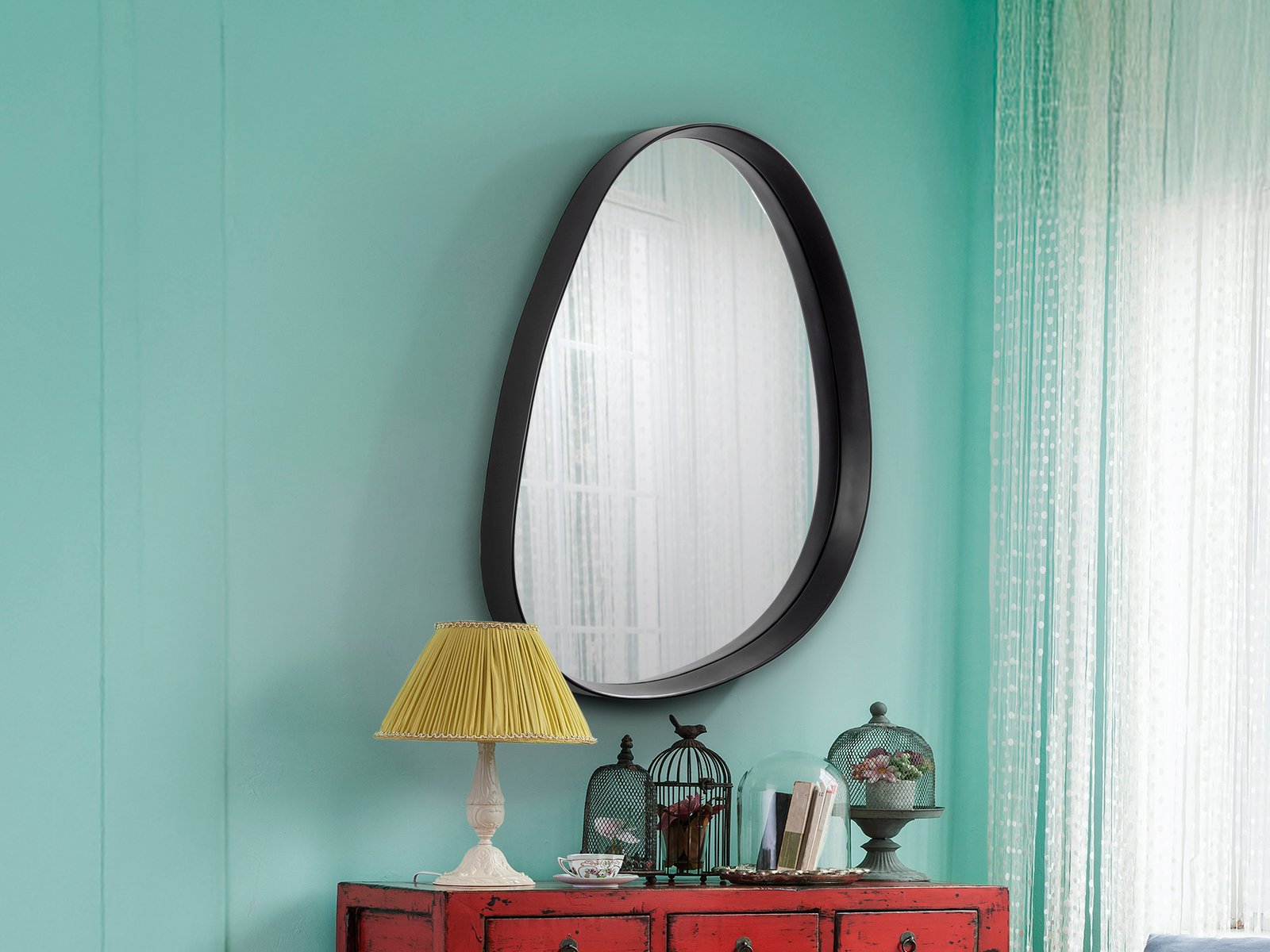 Espejo decorativo, con marco realizado en PU acabado negro.
