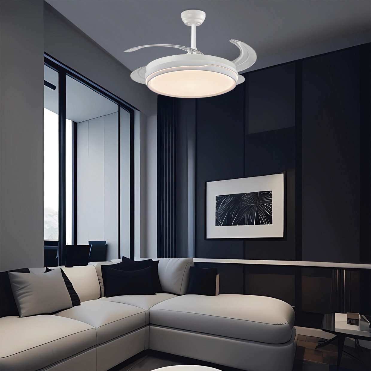 Motor DC 30w/Potencia luz 54w/6800lm/CCTRegulador de intensidad6 Velocidades/Temporizador/MemoriaModos (Invierno/Verano/Brisa)Mando a distancia (pilas no incluidas)/Control por APPSuperficie de estancia 13-20m2/Nivel sonoro 20db/3 PalasIn
